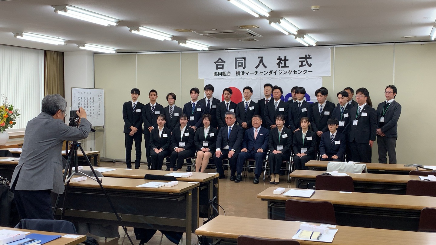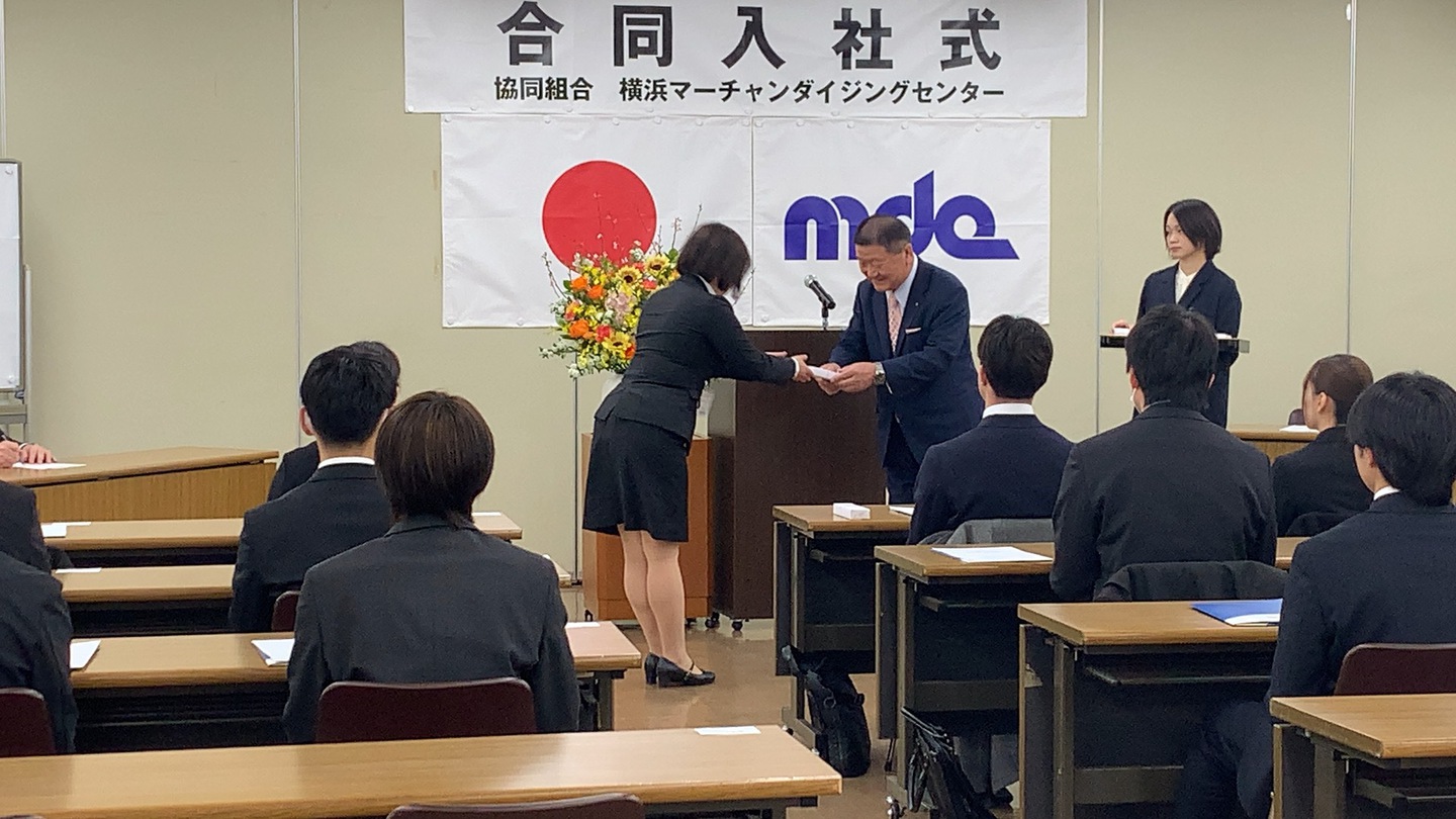 研修に先立ち、4月1日に、組合企業に入社された24名の方々の合同入社式を、MDC会館2階第2会議室にて開催しました。