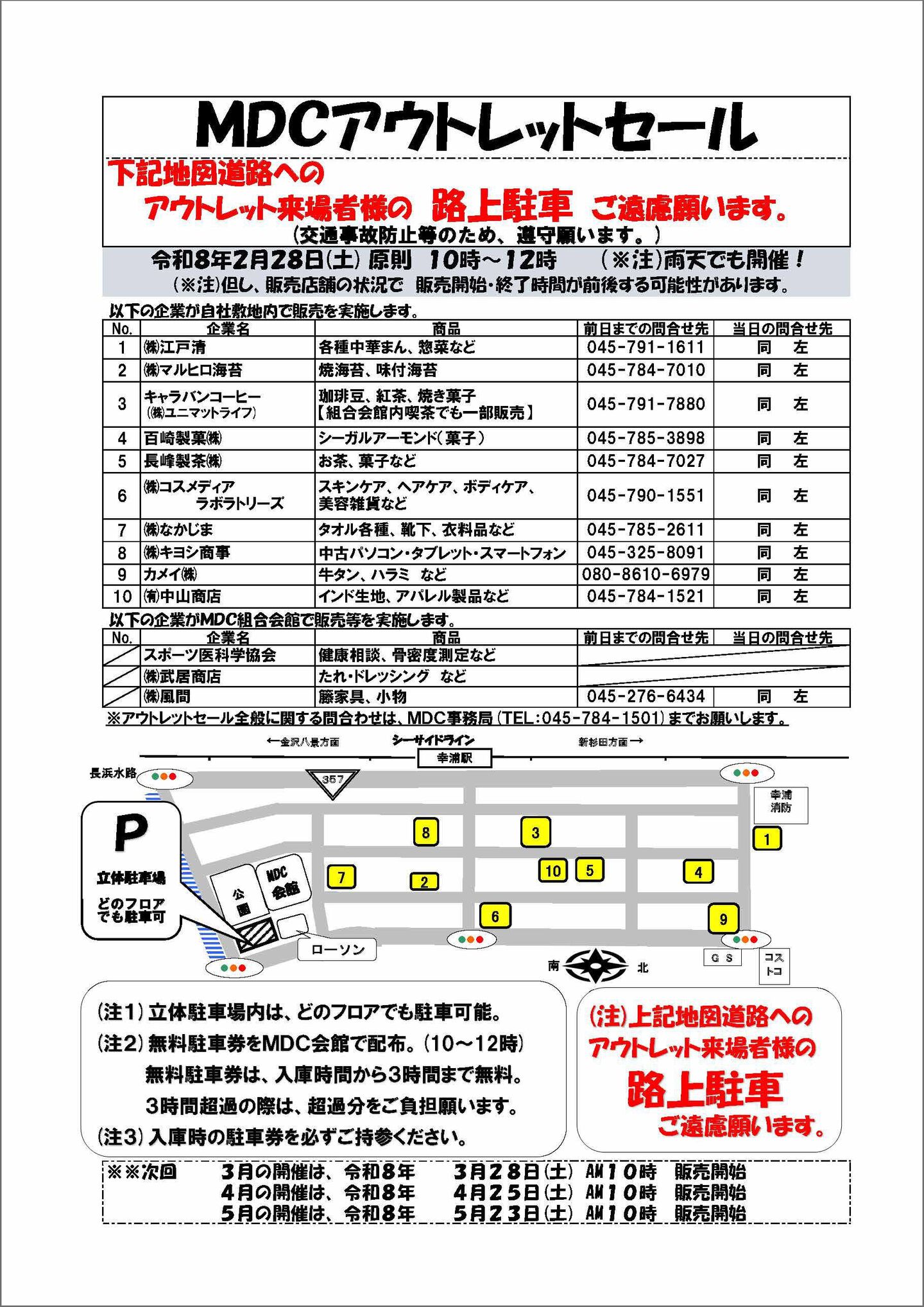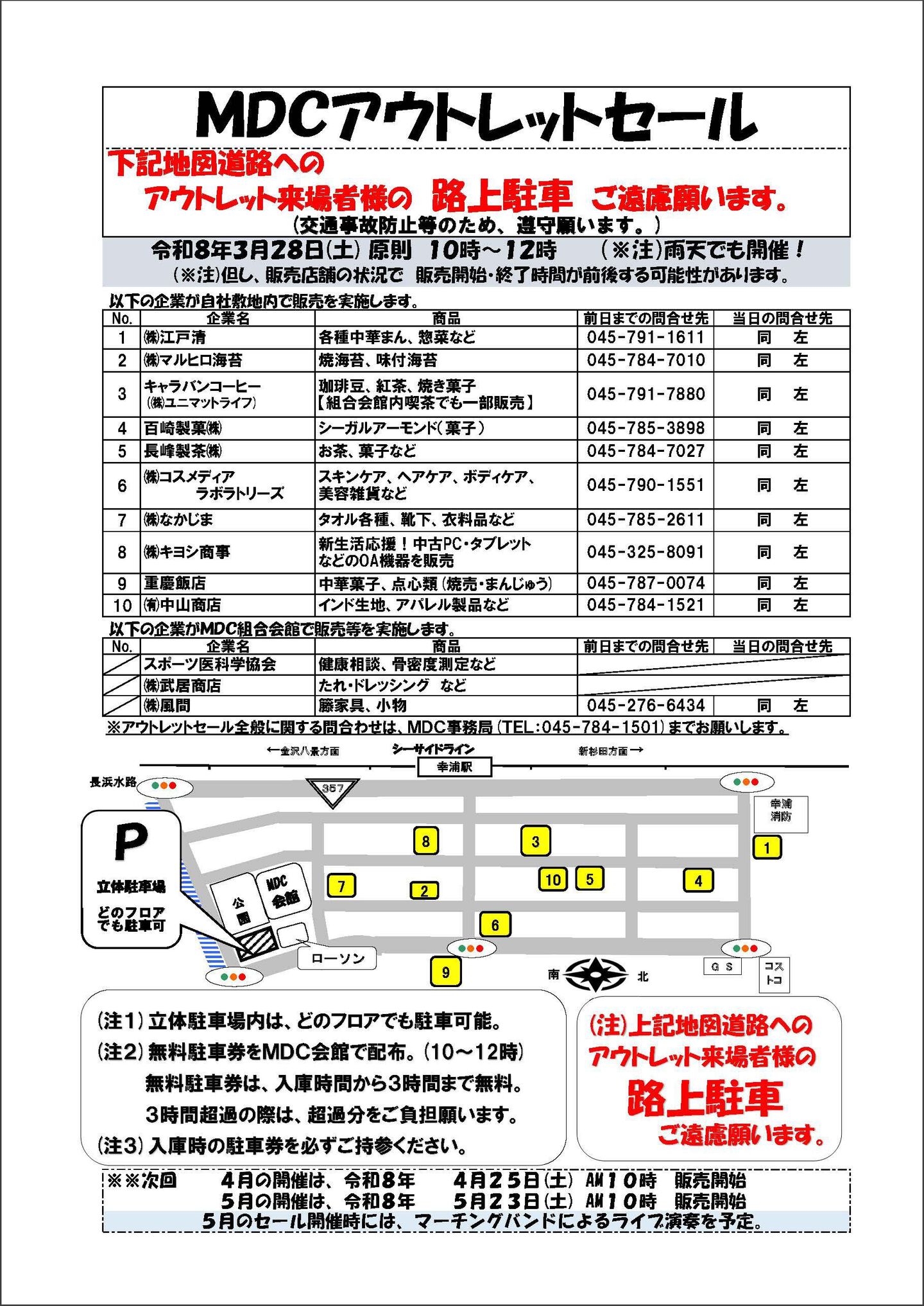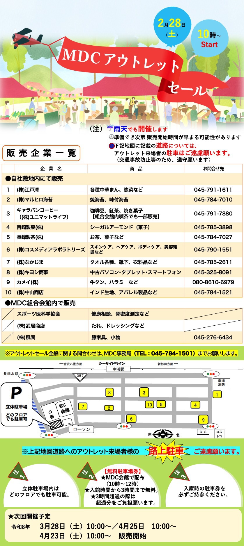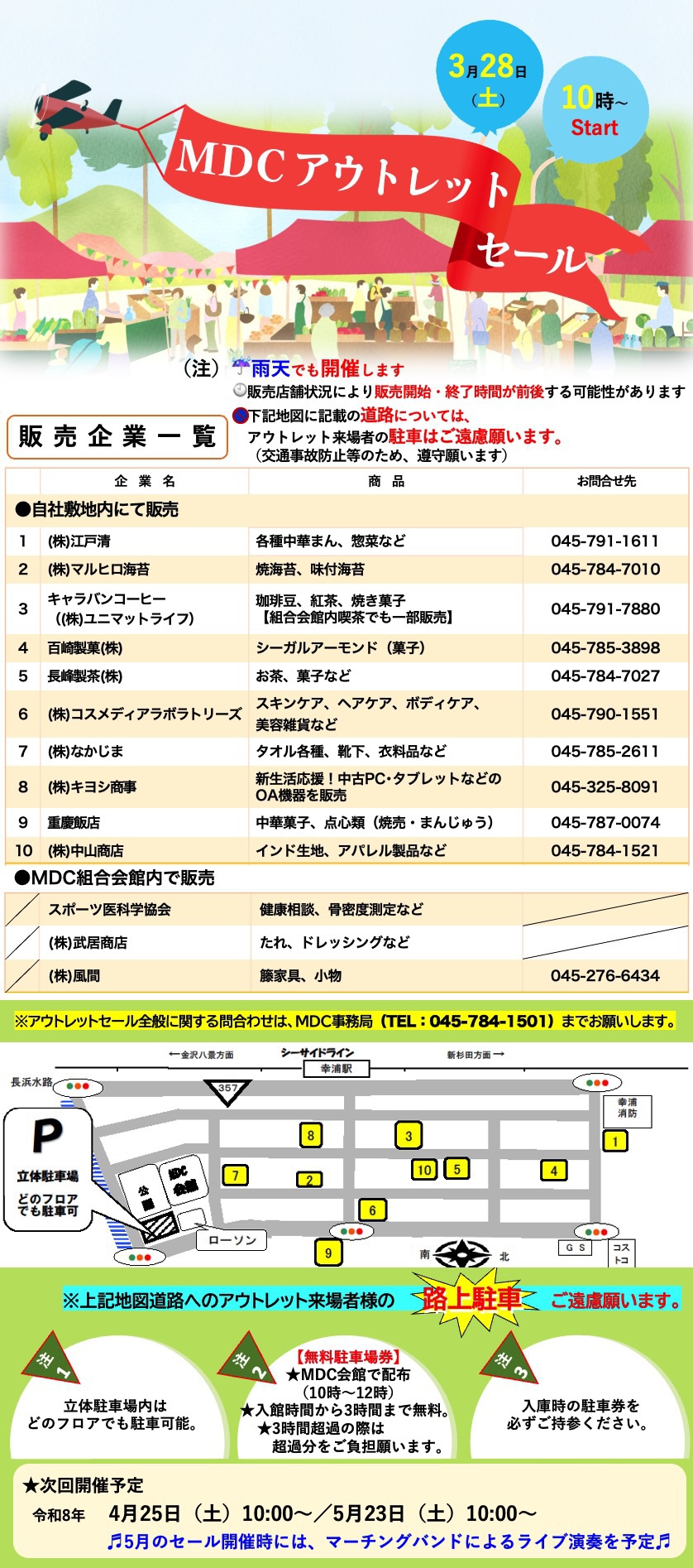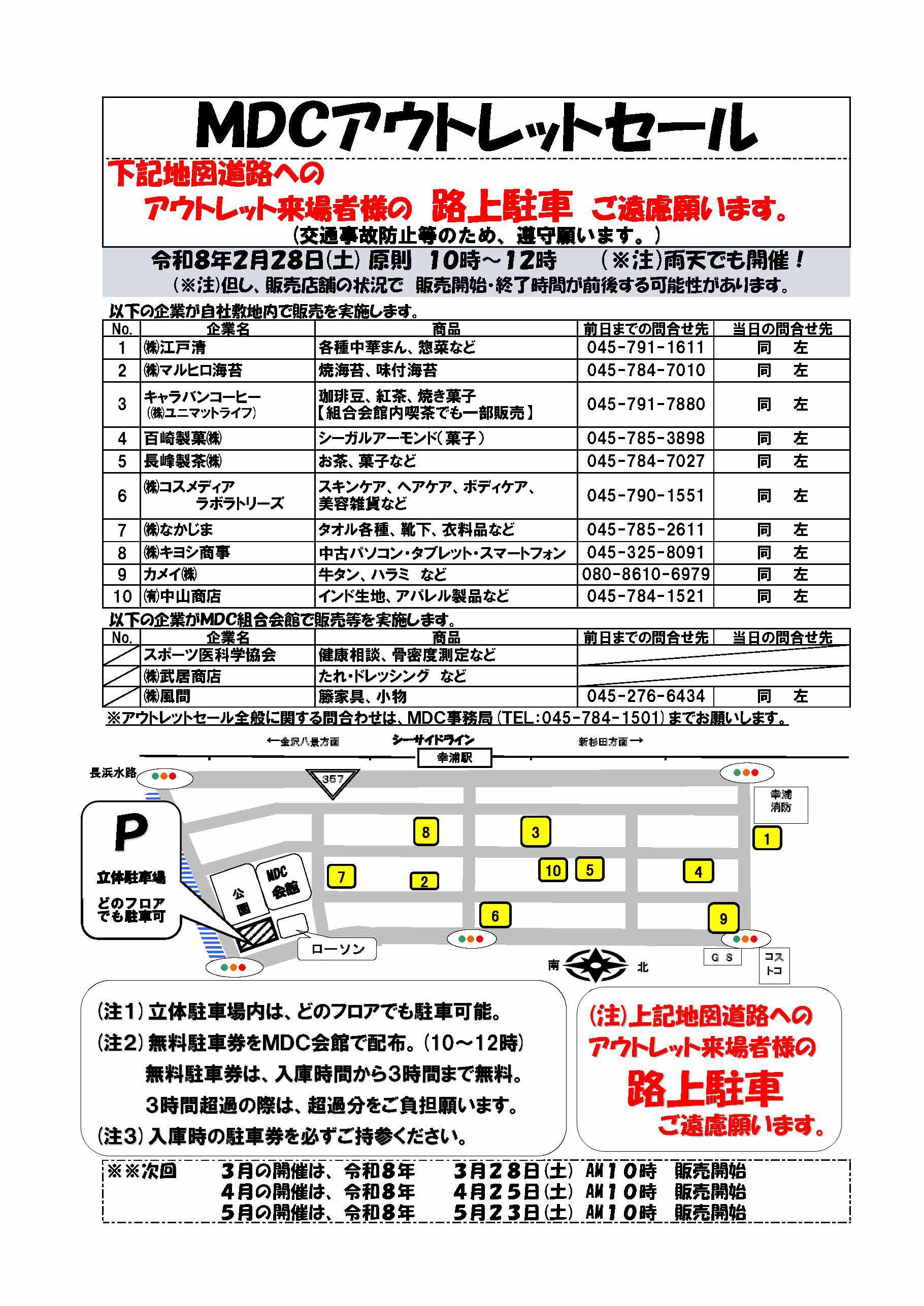 - ※MDCアウトレットセールは、シーサイドライン幸浦駅下車すぐ。