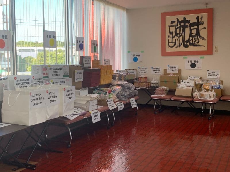 特別イベントの1つ目は、組合企業から提供された豪華景品が先着300名様に当たる抽選会です。会場で配布されている案内チラシを店舗に持参し、購入印を2つゲットすることで抽選に参加できるというものです。今回も早い時間から多数のご来場があり、開始1時間ほどで350名様に達する大盛況ぶりでした。