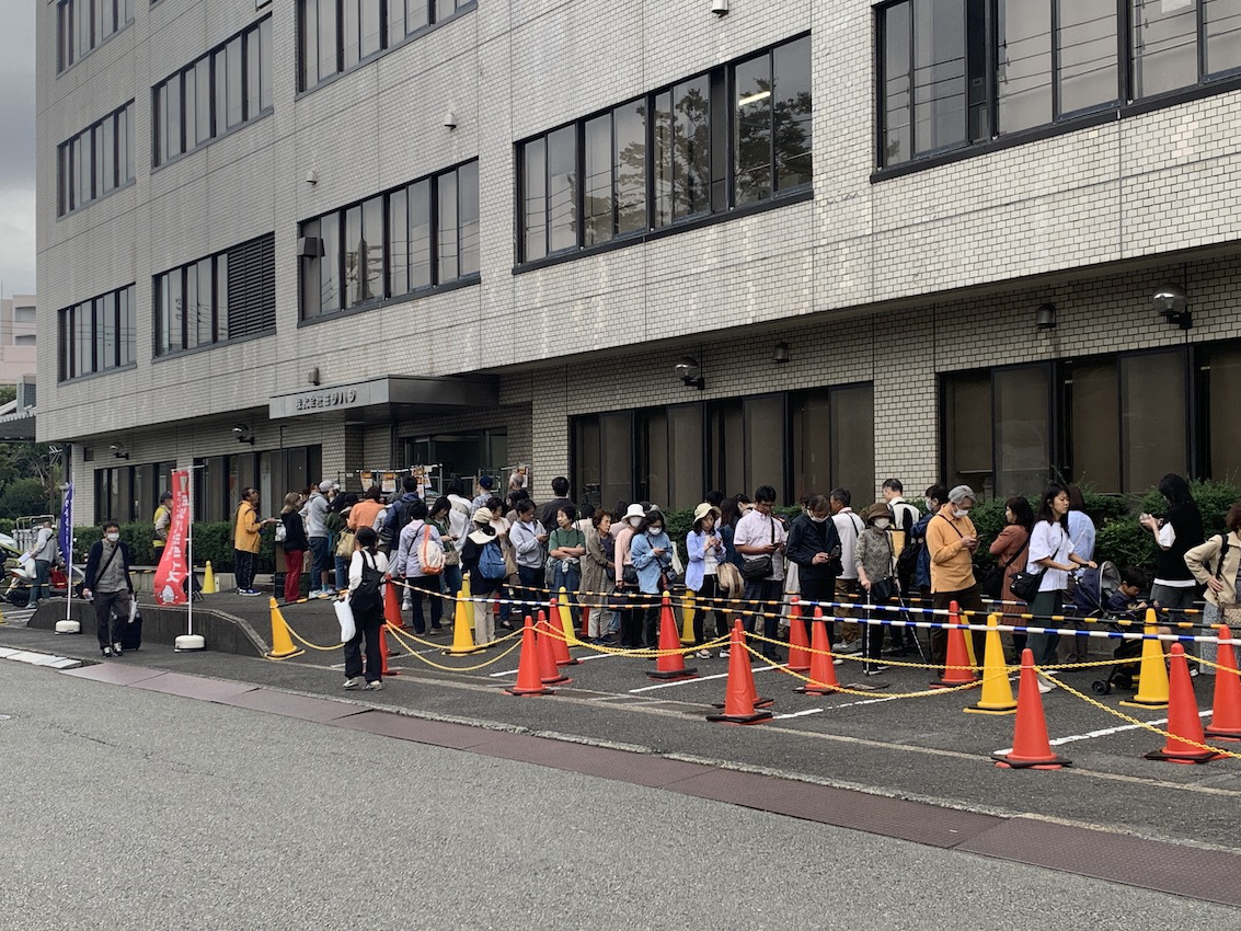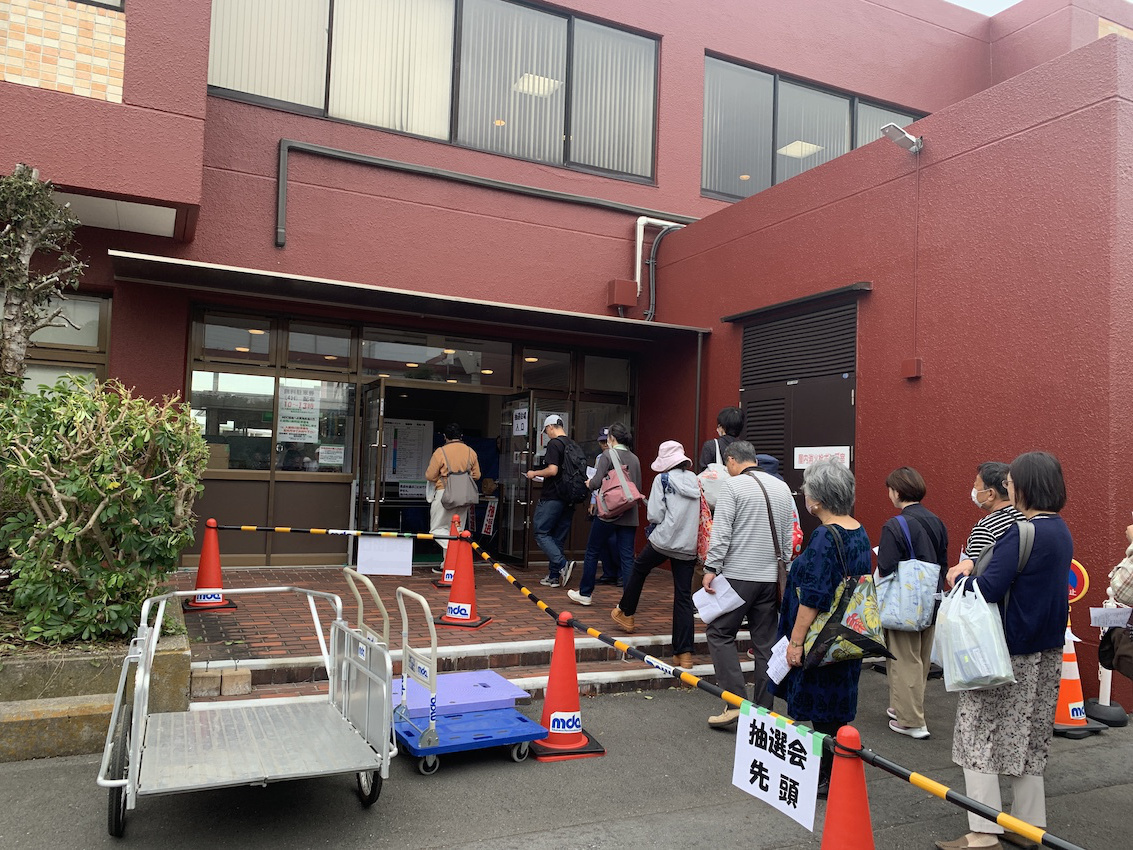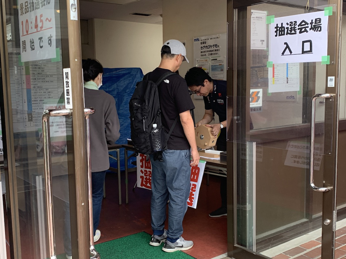MDC会館ロビーにて10時45分から抽選会が始まると、すぐに長蛇の列ができる盛況ぶりとなりました。